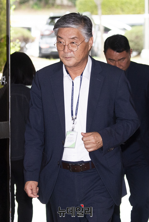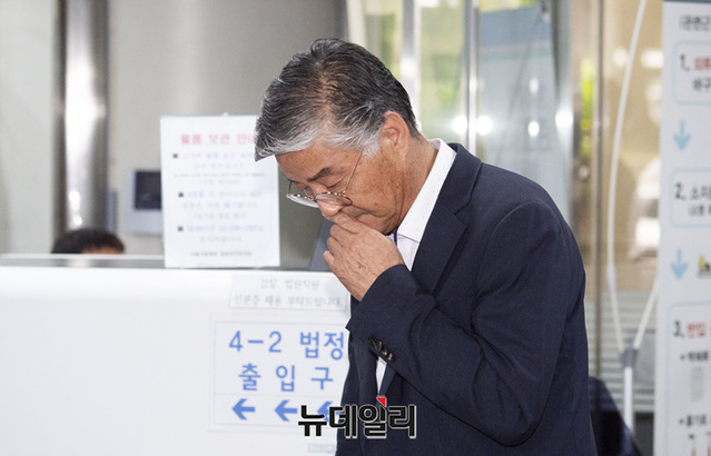 프로축구 선수 입단 비리 의혹을 받은 이종걸 전 안산 그리너스FC 대표가 7일 오전 서울 서초구 중앙지법으로 구속 전 피의자 심문(영장심사)를 받기 위해 입장하고 있다.