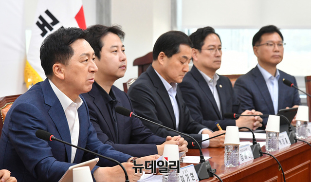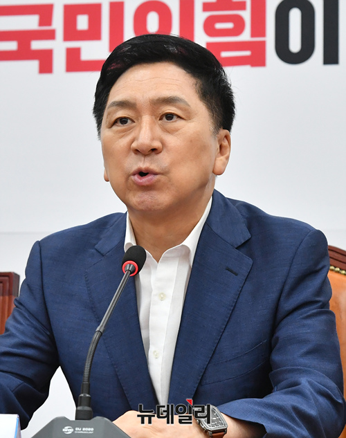 김기현 국민의힘 대표가 7일 오전 국회에서 열린 최고위원회의에 참석해 모두발언을 하고 있다.