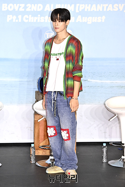 그룹 더보이즈(THE BOYZ) 주연 7일 오후 서울 영등포구 CGV 영등포에서 열린 두 번째 정규앨범 '판타지 파트.1 8월의 크리스마스(PHANTASY Pt.1 Christmas In August)' 발매 기념 기자간담회에서 포토타임을 갖고 있다.이번 앨범은 타이틀곡 '립 글로스(LIP GLOSS)'를 포함해 '패션 프루트(Passion Fruit)' '라이트하우스(Lighthouse)' '줄리의 법칙' '파이어 아이즈(Fire Eyes)' '나만 아는 이야기(Fairy Tale)'까지 여섯 곡을 담았다. 음원은 6시 공개.