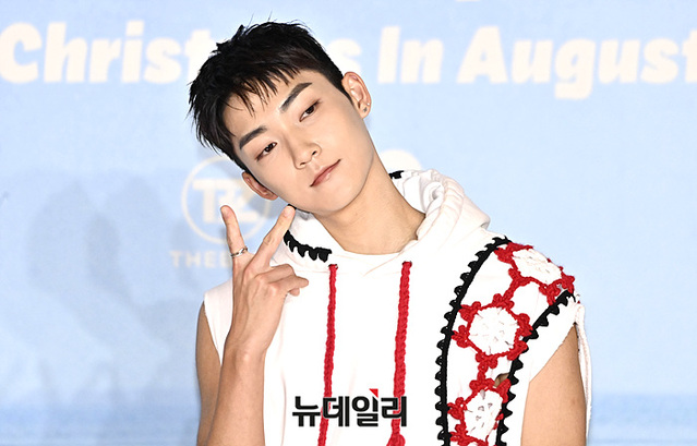 그룹 더보이즈(THE BOYZ) 케빈이 7일 오후 서울 영등포구 CGV 영등포에서 열린 두 번째 정규앨범 '판타지 파트.1 8월의 크리스마스(PHANTASY Pt.1 Christmas In August)' 발매 기념 기자간담회에서 포토타임을 갖고 있다.이번 앨범은 타이틀곡 '립 글로스(LIP GLOSS)'를 포함해 '패션 프루트(Passion Fruit)' '라이트하우스(Lighthouse)' '줄리의 법칙' '파이어 아이즈(Fire Eyes)' '나만 아는 이야기(Fairy Tale)'까지 여섯 곡을 담았다. 음원은 6시 공개.