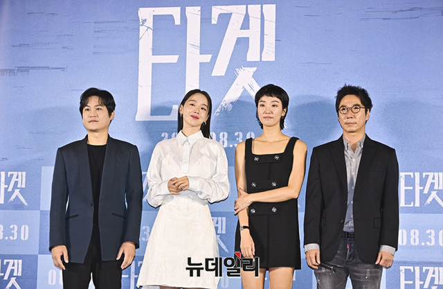 배우 김성균, 신혜선, 이주영, 박희곤 감독이 9일 오전 서울 성동구 메가박스 성수에서 열린 영화 '타겟(감독 박희곤)' 제작보고회에서 포토타임을 갖고 있다.