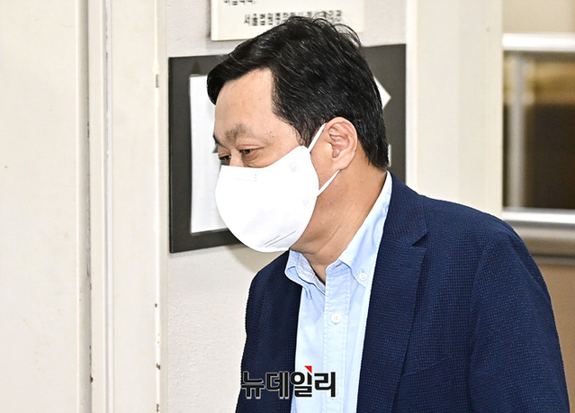 정진상 전 더불어민주당 당대표실 정무조정실장이 11일 오전 서울 서초구 중앙지방법원에서 열린 뇌물수수 혐의 관련 공판에 출석하고 있다.