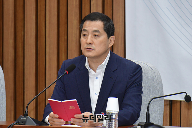 박대출 국민의힘 정책위의장이 11일 오전 국회에서 열린 원내대책회의에서 모두발언을 하고 있다.