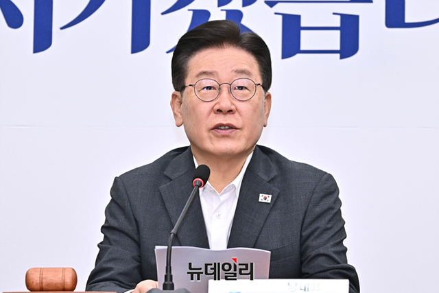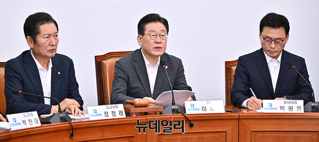 이재명 더불어민주당 대표가 14일 오전 국회에서 열린 최고위원회의에서 모두발언을 하고 있다.