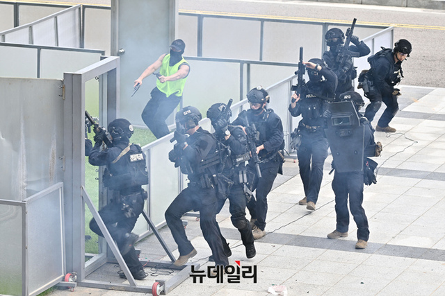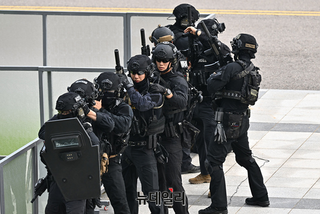 [포토] 을지훈련 대비 테러진압 훈련하는 경찰특공대