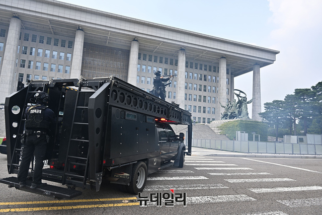 경찰특공대가 14일 오후 국회에서 을지훈련 대비 테러진압 훈련을 하고 있다.