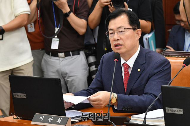 행정안전위원회 여당 간사인 이만희 국민의힘 의원이 16일 오전 국회에서 열린 행안위 전체회의에서 모두발언을 하고 있다.