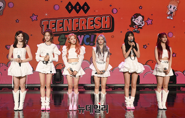 걸그룹 스테이씨 세은, 제이, 시은, 수민, 윤, 아이사가 16일 오후 서울 강남구 일지아트홀에서 열린 세 번째 미니앨범 'TEENFRESH' 발매 기념 쇼케이스에서 소감을 밝히고 있다.타이틀곡 '버블(Bubble)'을 포함해 '낫 라이크 유(Not Like You)' '아이 워너 두(I Wanna Do)' '비 마인(Be Mine)' 그리고 '버블(Bubble)'의 영어 버전과 Sped Up 버전까지 총 여섯 곡을 담았다. 음원은 오후6시 공개.