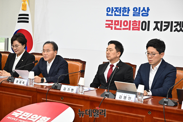 윤재옥 국민의힘 원내대표가 17일 오전 국회에서 열린 최고위원회의에 참석해 모두발언을 하고 있다.