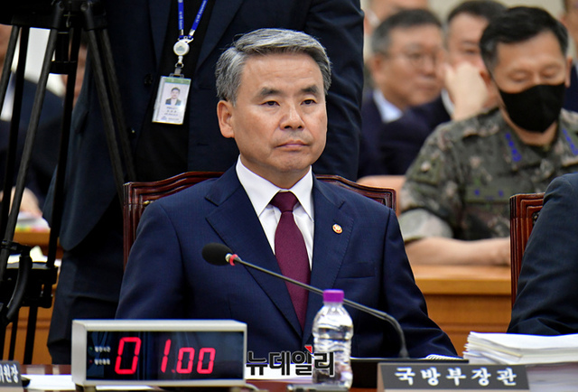 이종섭 국방부 장관이 21일 오후 국회에서 열린 국방위원회 전체회의에 참석해 앉아 있다.