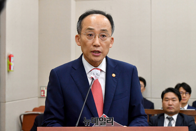 추경호 경제부총리 겸 기획재정부 장관이 22일 오전 국회에서 열린 기획재정위원회 전체회의에 출석해 업무보고를 하고 있다.