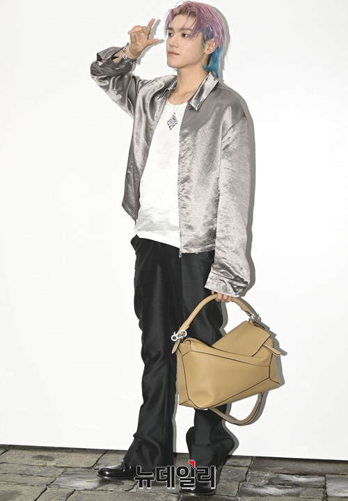 NCT 태용이 22일 오후 서울 성동구 플라츠2에서 열린 로에베(LOEWE) 2023 가을겨울 컬렉션 프레젠테이션 및 스퀴즈백 론칭행사에서 포즈를 취하고 있다.