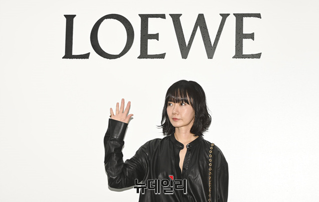 배우 배두나가 22일 오후 서울 성동구 플라츠2에서 열린 로에베(LOEWE) 2023 가을겨울 컬렉션 프레젠테이션 및 스퀴즈백 론칭행사에서 포즈를 취하고 있다.