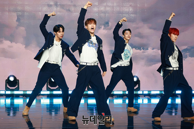 신인 아이돌그룹 티아이오티(TIOT)가 23일 오전 서울 강남구 일지아트홀에서 열린 프리 데뷔앨범 쇼케이스에서 타이틀곡 무대를 선보이고 있다.티아이오티는 김민성, 금준현, 홍건희, 최우진 등으로 구성된 신인 아이돌 그룹이다.타이틀곡 '백전무패'를 통해 신인의 패기 넘치는 활동의 시작을 알린다. 첫 번째 트랙 '디스 이즈 아워 턴(This is our time)'를 시작으로 '번지(BUNGEE)' '서핑(Surfing)' '스타라이트(Starlight)' 등 총 5곡이 수록됐다. 음원은 오후 6시 공개.