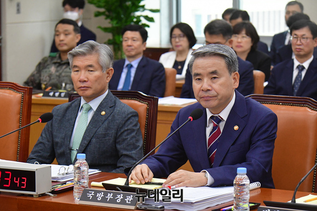 이종섭 국방부 장관이 25일 오전 국회에서 열린 국방위원회 전체회의에서 의원들의 질문에 답하고 있다.