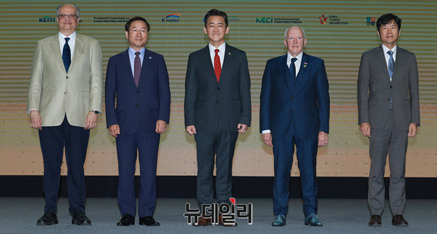 유셰프 나셰프(Youssef Nassef) UNFCCC 사무국 적응국장(왼쪽부터), 유정복 인천시장, 임상준 환경부 차관, Harry Vreuls UNFCCC SBSTA 의장, 이창훈 KEI 원장이 28일 오전 인천 연수구 송도컨벤시아에서 개막한 2023 유엔기후변화협약 적응주간 개회식에서 기념촬영을 하고 있다.2023 유엔기후변화협약 적응주간은 2019년 유엔기후변화협약 적응주간에 이어 2회 연속으로 인천 송도에새 개최된다. 전 세계적으로 기후위기가 심화돼 기후 위기 적응의 중요성이 커짐에 따라 세계 각국의 기후변화 적응대책과 이행 경험을 공유하기 위해 마련됐다.'적응의 새로운 시대 : 적응의 확대와 변혁'을 주제로 9월 1일까지 송도컨벤시아에서 열린다. (인천=정상윤 기자)