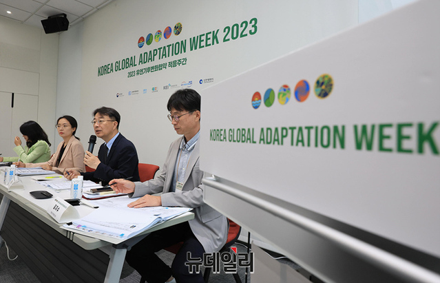 이영석 환경부 기후변화정책관이 28일 오전 인천 연수구 송도컨벤시아에서 개막한 2023 유엔기후변화협약 적응주간 기자회견에서 적응주간을 소개하고 있다.2023 유엔기후변화협약 적응주간은 2019년 유엔기후변화협약 적응주간에 이어 2회 연속으로 인천 송도에새 개최된다. 전 세계적으로 기후위기가 심화돼 기후 위기 적응의 중요성이 커짐에 따라 세계 각국의 기후변화 적응대책과 이행 경험을 공유하기 위해 마련됐다.'적응의 새로운 시대 : 적응의 확대와 변혁'을 주제로 9월 1일까지 송도컨벤시아에서 열린다. (인천=정상윤 기자)
