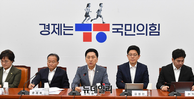 김기현 국민의힘 대표가 28일 오전 국회에서 열린 최고위원회의에서 모두발언을 하고 있다.