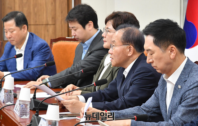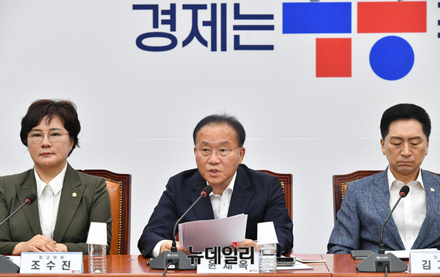 윤재옥 국민의힘 원내대표가 28일 오전 국회에서 열린 최고위원회의에서 모두발언을 하고 있다.