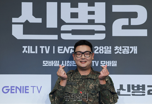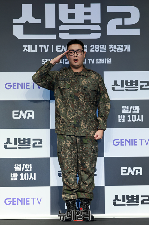 배우 김민호가 28일 오후 서울 구로구 디큐브시티에서 열린 지니TV 오리지널 '신병2(연출 민진기)' 제작보고회에서 포토타임을 갖고 있다.'신병2'는일병만 되면 편해질 줄 알았던 신병 박민석(김민호 분) 앞에 화생방 보다 독한중대장 오승윤(김지석 분)이 부임 하면서 펼쳐지는 생활관 라이프를 그린다. 시즌1에서 다루지 못한 다채로운 에피소드를 그릴 예정이다.28일 첫 방송을 시작으로 매주 월, 화요일 밤 10시 시청자들을 찾아간다. 지니TV,지니TV모바일, ENA에서 관람 가능하다. 배우 김지석, 김민호, 남태우, 이상진, 이충구, 전승훈, 이정현, 장성범 등이 출연한다.