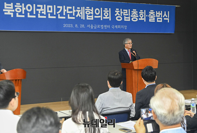 북한인권민간단체협의회 창립총회·출범식이 28일 오후 서울 종로구 서울글로벌센터 국제회의장에서 진행되고 있다.