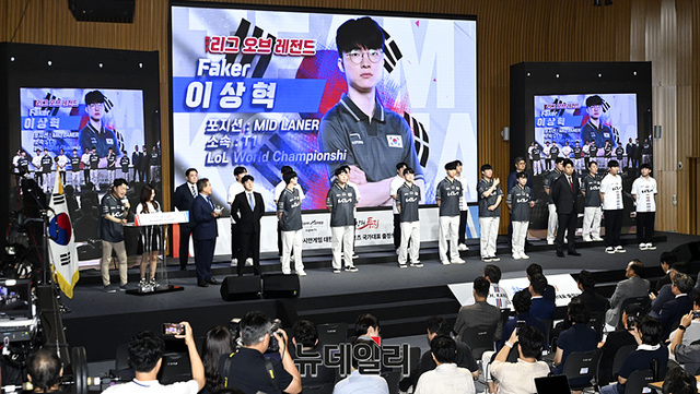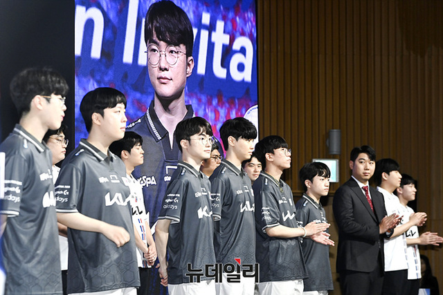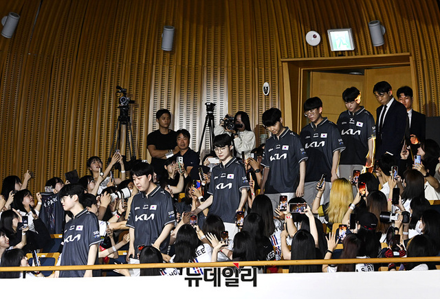 대한민국 e스포츠 국가대표 선수들이 28일 오후 서울 중구 서울특별시청에서 열린 제19회 항저우 아시안게임 대한민국 e스포츠 국가대표 출정식에 입장하고 있다.코로나 19로 연기돼 올해 개최되는 제19회 항저우 아시안 게임은 9월 23일부터 10월 8일까지 진행된다. e스포츠는 9월 24일부터 10월 2일까지 각각 진행된다.대한민국 선수들은 △리그 오브 레전드 △배틀그라운드 모바일 △피파 온라인4 △스트리트 파이터 V까지 총 4종목에 참가한다.
