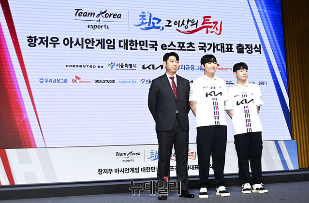 피파 온라인4 대표팀 선수들이 28일 오후 서울 중구 서울특별시청에서 열린 제19회 항저우 아시안게임 대한민국 e스포츠 국가대표 출정식에서 포토타임을 갖고 있다.코로나 19로 연기돼 올해 개최되는 제19회 항저우 아시안 게임은 9월 23일부터 10월 8일까지 진행된다. e스포츠는 9월 24일부터 10월 2일까지 각각 진행된다.대한민국 선수들은 △리그 오브 레전드 △배틀그라운드 모바일 △피파 온라인4 △스트리트 파이터 V까지 총 4종목에 참가한다.