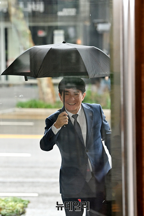 이균용 신임 대법원장 후보자가 29일 오전 서울 서초구에 마련된 인사청문회 준비사무실로 출근하고 있다.