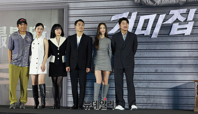 김지운 감독과 송강호가 29일 오전 서울 CGV 용산아이파크몰에서 열린 영화 '거미집(연출 김지운)' 제작보고회에서 포토타임을 갖고 있다.거미집은 1970년대, 다 찍은 영화 ‘거미집’의 결말만 바꾸면 걸작이 될 거라 믿는 김 감독(송강호 분)이 검열, 바뀐 내용을 이해하지 못하는 배우와 제작자 등 미치기 일보 직전의 현장에서 촬영을 밀어붙이는 이야기를 유쾌하게 그린다.배우 송강호, 임수정, 오정세, 전여빈, 정수정 등이 출연한다. 9월 27일 극장 개봉.