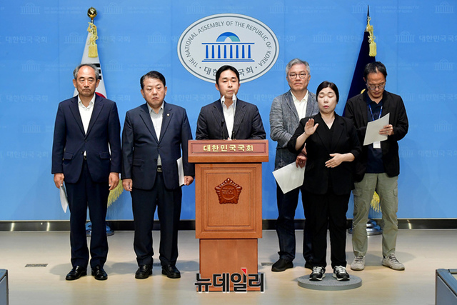 더불어민주당 해병대원 사망사고 진상규명 TF 위원인 박주민 의원이 29일 오후 국회 소통관에서 해병대원 사망사고 관련 기자회견을 하고 있다.