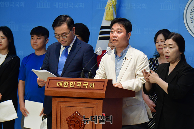 지성호 국민의힘 의원이 29일 오전 국회 소통관에서 탈북민 강제북송 관련 기자회견을 갖고 있다.