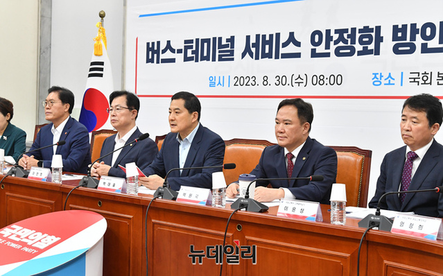박대출 국민의힘 정책위의장이 30일 오전 국회에서 열린 버스·터미널 서비스 안정화 방안 당정협의회에서 발언을 하고 있다.