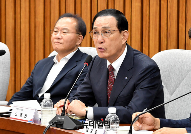 노동진 수협중앙회 회장이 30일 오전 국회에서 열린 '수산물 소비 활성화를 위한 수협-급식업체 간 상생협력 협약식'에서 모두발언을 하고 있다.