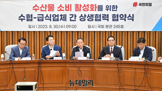 [포토] 수협-급식업체 간 상생협력 협약식 참석한 윤재옥 원내대표