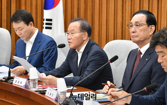 윤재옥 국민의힘 원내대표가 30일 오전 국회에서 열린 '수산물 소비 활성화를 위한 수협-급식업체 간 상생협력 협약식'에서 모두발언을 하고 있다.