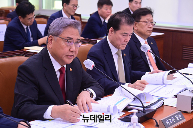 박진 외교부 장관이 31일 오전 국회에서 열린 외교통일위원회 전체회의에서 의원의 질의에 답변하고 있다.