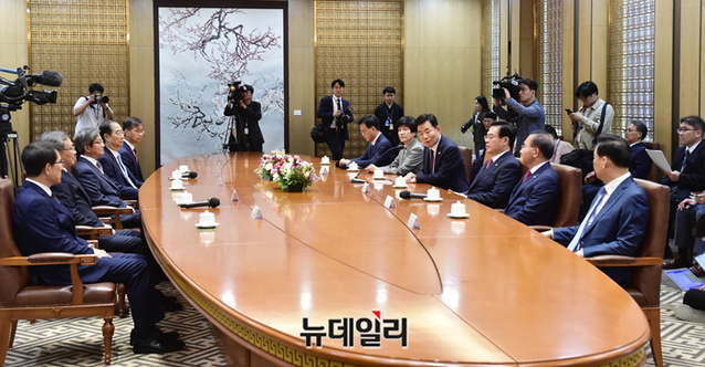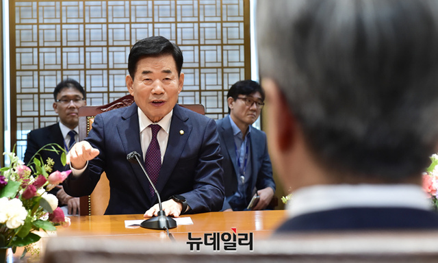 [포토] 본회의 전 사전환담회 갖는 김진표 의장