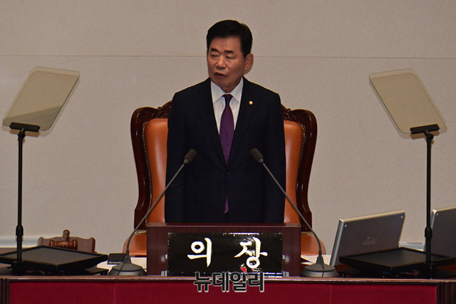 김진표 국회의장이 1일 오후 국회 본회의장에서 열린 개회식에서 개회사를 하고 있다.