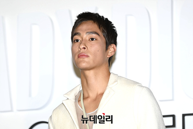 모델 홍태준이 1일 오후 서울 성동구 디올 성수 컨셉스토어에서 열린 LADY DIOR CELEBRATION 전시회 포토콜에서 포즈를 취하고 있다.