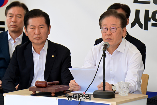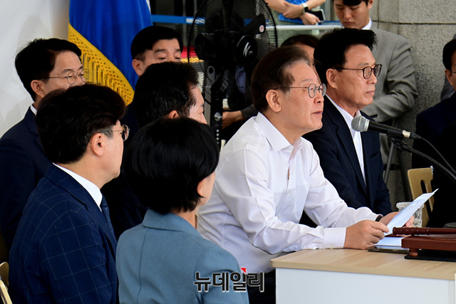 [포토] 단식농성장서 최고위 이어가는 이재명 대표