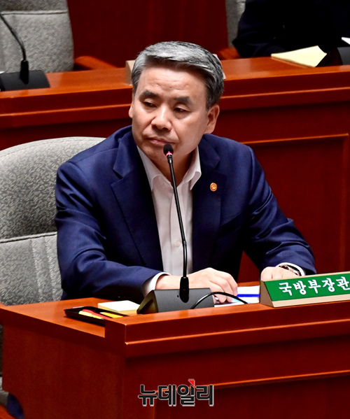 이종섭 국방부 장관이 4일 오전 국회에서 열린 예산결산특별위원회 전체회의에서 의원들의 질문에 답하고 있다.