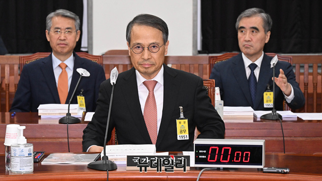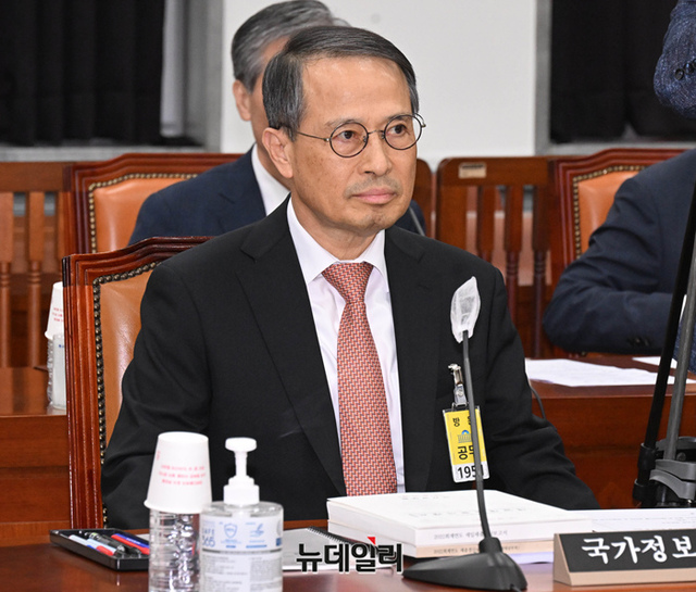 김규현 국가정보원장이 4일 오후 국회에서 열린 정보위원회 전체회의에 출석해 회의 시작을 기다리고 있다.