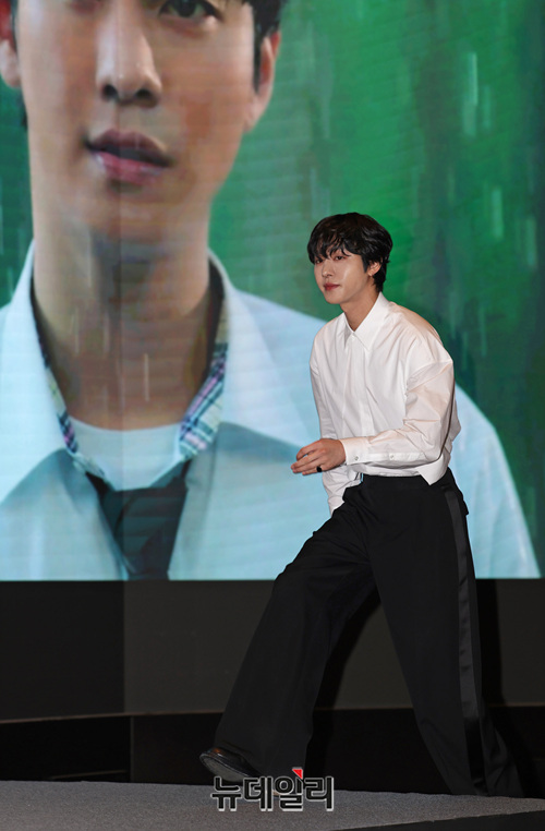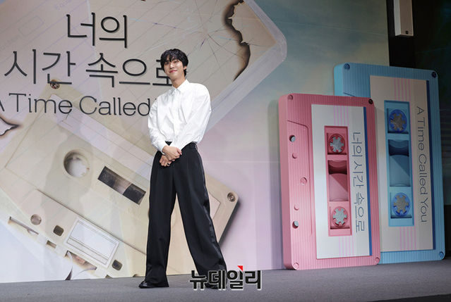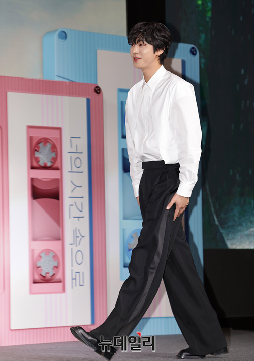 배우 안효섭이 4일 오전 서울 중구 앰배서더 서울 풀만에서 열린 넷플릭스 오리지널 시리즈 ‘너의 시간 속으로(연출 김지원, 각본 최효비)’ 제작보고회에서 포즈를 취하고 있다.