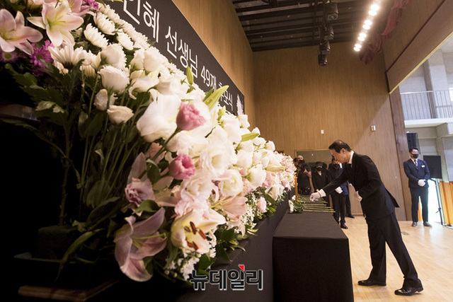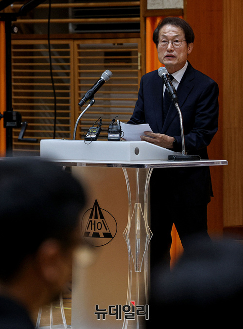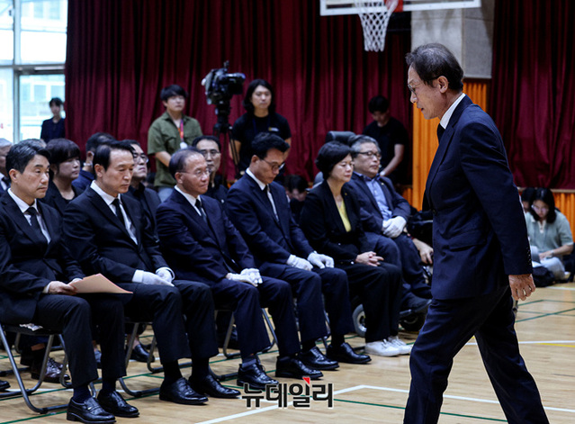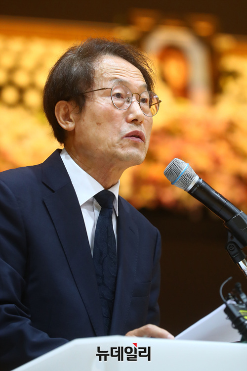 조희연 서울교육감이 4일 오후 서울 서초구 서이초등학교에서 열린 사망 교사 49재 추모식에서 추도사를 하고 있다. (사진=공동취재단)