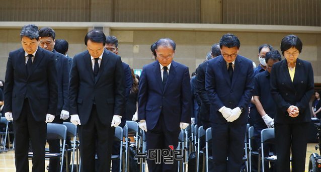 [포토] 서이초 교사 49재 추모식 참석한 이주호-조희연-임태희