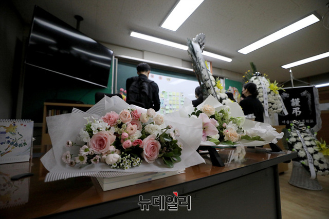 [포토] 서이초 교사 교실 방문한 이주호 교육부 장관