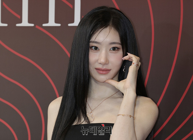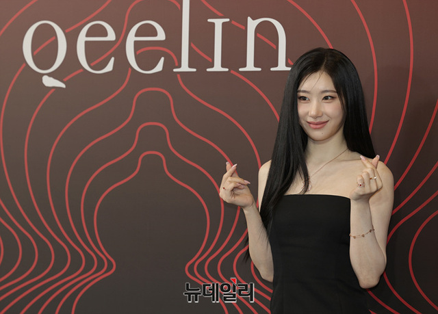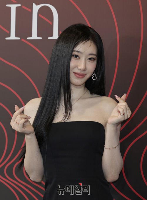 있지 채령이 5일 오전 서울 중구 롯데백화점 본점에서 열린 주얼리 브랜드 키린 팝업스토어 오픈행사에 참석해 포즈를 취하고 있다.