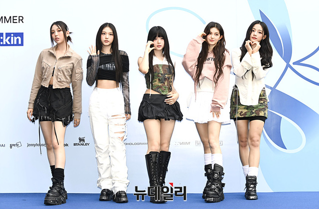서울패션위크 홍보대사 뉴진스가 5일 오후 서울 중구 동대문디자인플라자에서 열린 서울패션위크 오프닝쇼 '얼킨' 포토월에서 포즈를 취하고 있다.