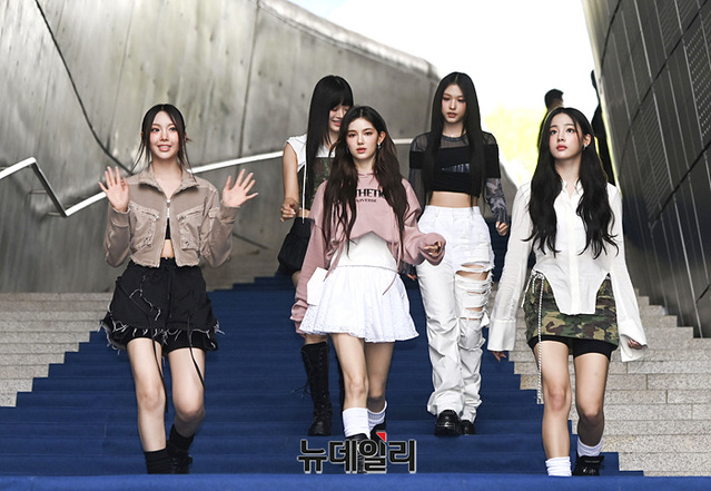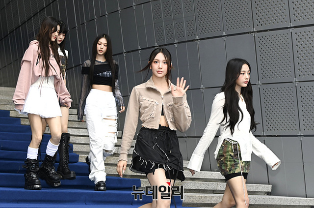 서울패션위크 홍보대사 뉴진스가 5일 오후 서울 중구 동대문디자인플라자에서 열린 서울패션위크 오프닝쇼 '얼킨' 포토월에 참석하고 있다.