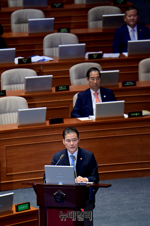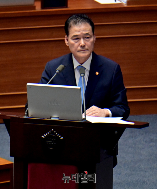 김영호 통일부 장관이 5일 오후 국회에서 열린 본회의 정치분야 대정부질문에서 의원의 질문에 답변하고 있다.